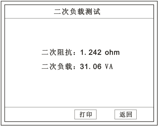 接好線后選擇 二次負(fù)載 ,設(shè)定額定二次后選擇 確定儀器將自動計算出阻抗和負(fù)載。