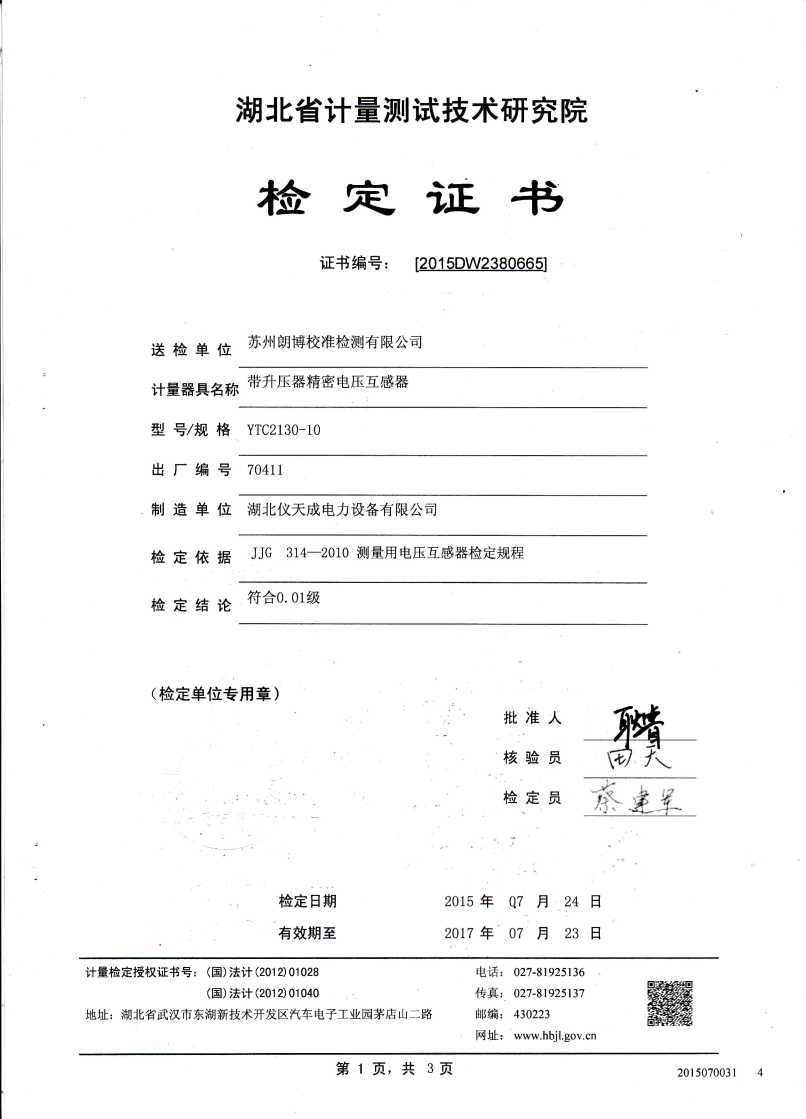 0.05級 即在額定負(fù)荷的情況下: 當(dāng)電壓為80%Un至120% Un的范圍內(nèi), 比差不大于0.05%,角差不大于2', 當(dāng)電壓為50% Un 時,比差不大 于0.075%,角差不大于3', 當(dāng)電壓為20% Un時,比差不大于0.1%, 角差不大于6'(實(shí)際誤差不大于誤差限值的60-70%)。 |