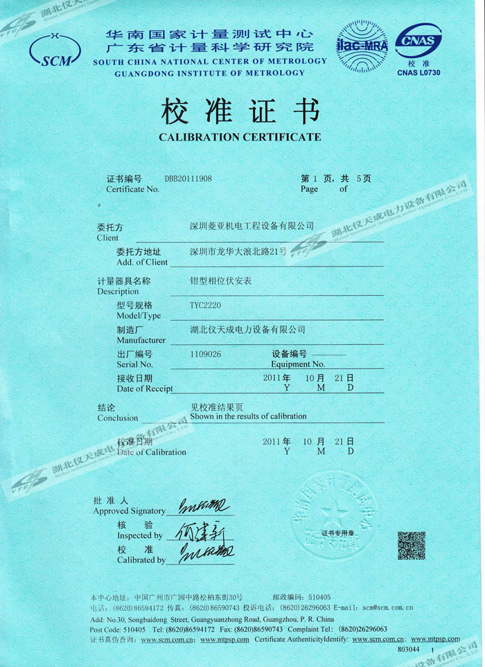 轉載:"YTC2220鉗型相位伏安表的資質(zhì)證書" 請注明來源于儀天成電力。 更多技術問題請致電儀天成電力客戶服務:027-87876585,技術部專線:027-87876585,在線客服:719388481
