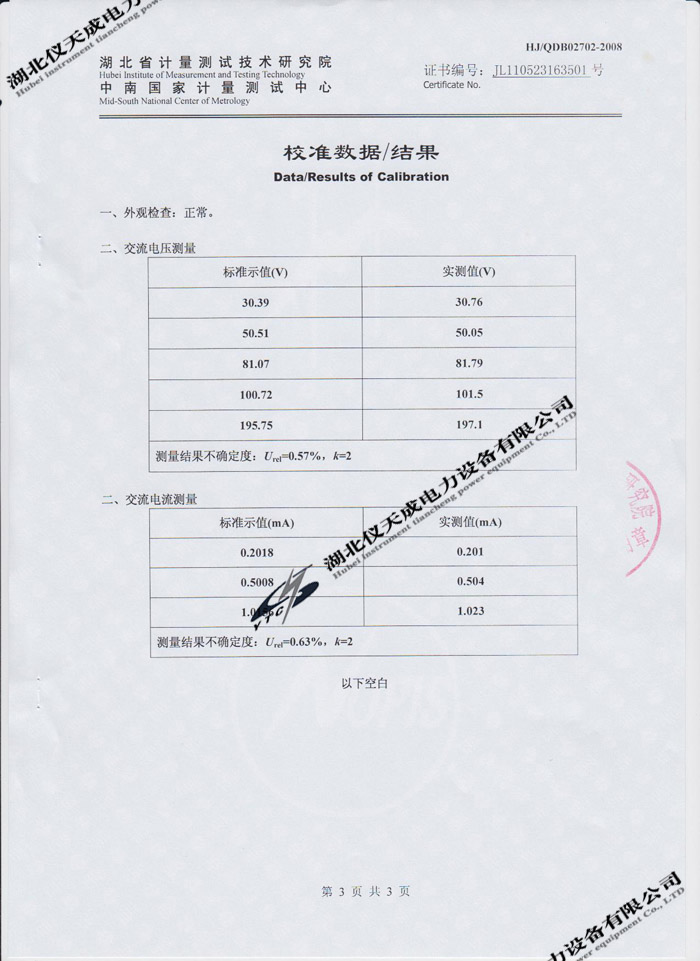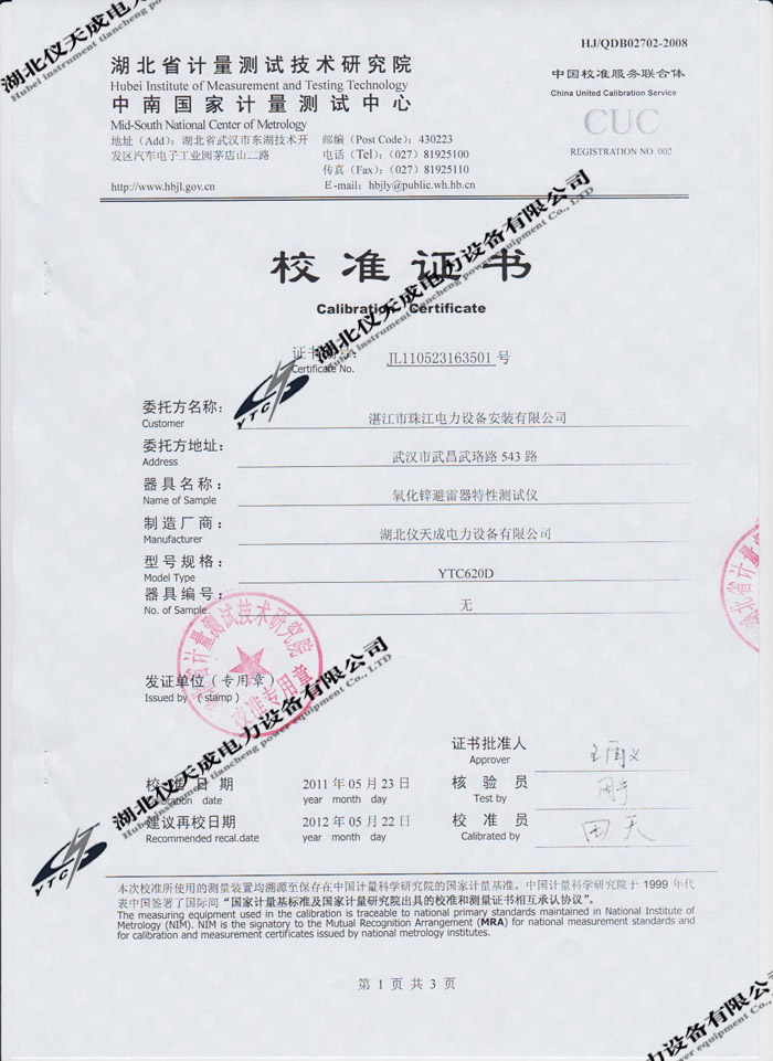 轉(zhuǎn)載:"YTC620D氧化鋅避雷器特性測(cè)試儀的資質(zhì)證書(shū)" 請(qǐng)注明來(lái)源于儀天成電力。 更多技術(shù)問(wèn)題請(qǐng)致電儀天成電力客戶(hù)服務(wù):027-87876585,技術(shù)部專(zhuān)線(xiàn):027-87876585,在線(xiàn)客服:719388481